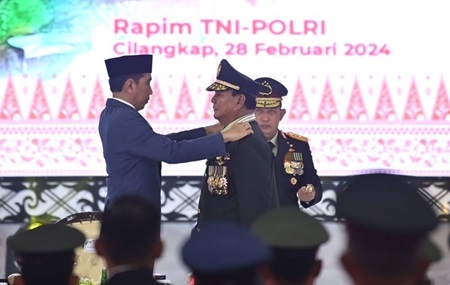 Kabarjakarta.com – Presiden Joko Widodo (Jokowi) menyematkan pangkat Jenderal Kehormatan kepada Menteri Pertahanan (Menhan) Prabowo Subianto pada Rabu, 28 Februari 2024.